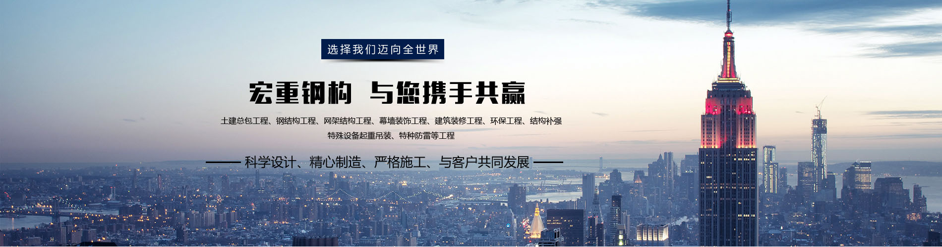廣東宏重鋼構工程有限公司主要從事土建總包工程、鋼結構工程、網架裝飾工程、建筑裝修工程、環保工程、結構補強、特殊設備起重吊裝、特種防雷等工程。集設計、制造、安裝、銷售一條龍的配套企業,擁有鋼結構生產一級生產資質、鋼結構工程專業承包二級資質、建筑幕墻工程專業承包二級資質、建筑裝修承包工程二級資質、特種工程專業承包資質、環保工程專業承包二級資質.....更多